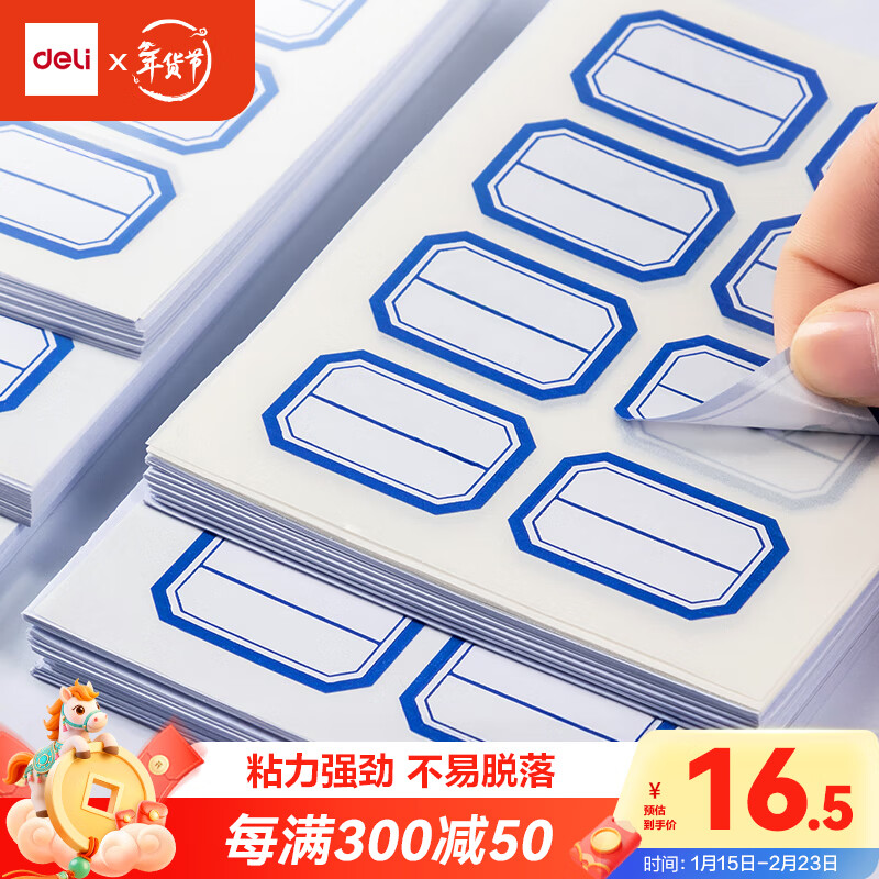 得力(deli)960枚不干胶标签便利贴贴纸自粘性标贴23mm×33mm8枚/张(共120张)33350