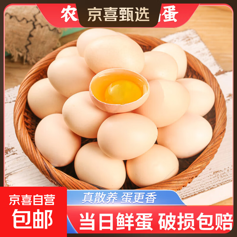 京喜加 鲜鸡蛋 土鸡蛋 五谷喂养 山林自养鸡蛋早餐 生鲜超市买菜40g 40枚 2000g