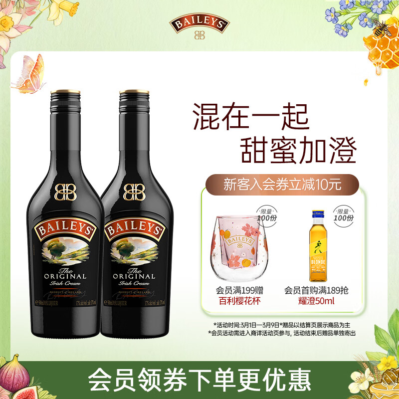 百利(Baileys)甜酒奶酒原味力娇酒利口酒 500ml*2 洋酒组合装