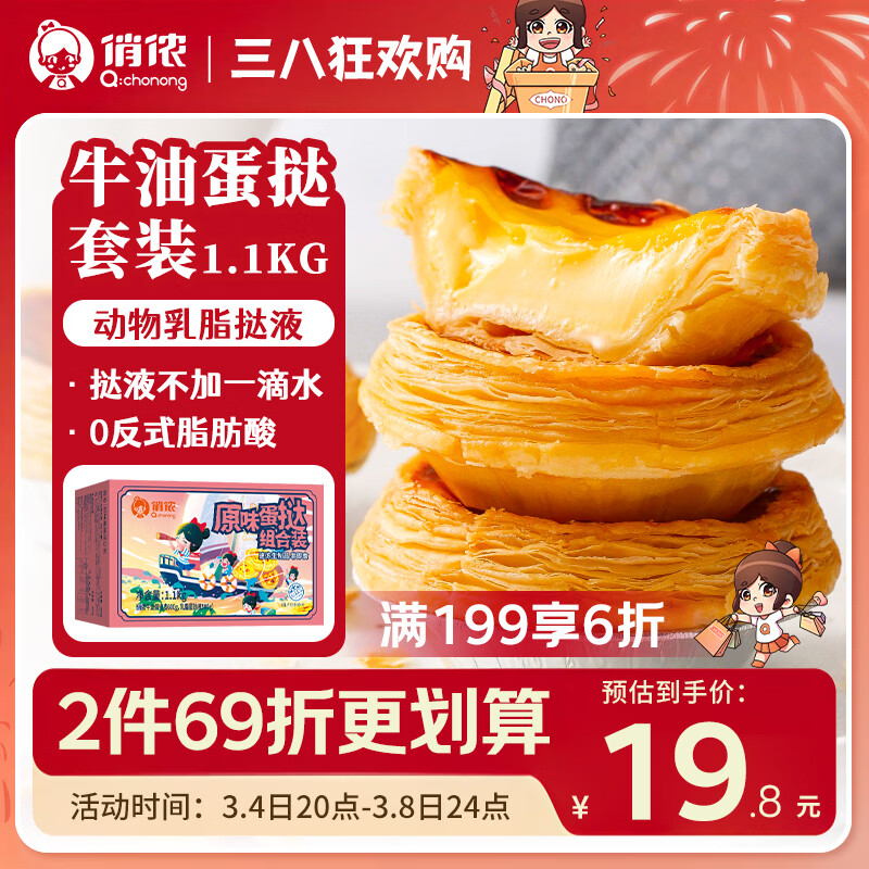 俏侬 蛋挞套装1.1kg 挞液500g+挞皮30只 空气炸锅烤箱烘焙半成品