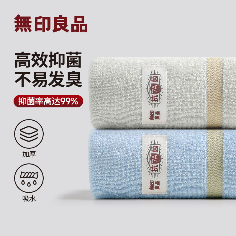 无印良品毛巾7A抗菌A类快速吸水洗脸面巾纯棉非纯棉珊瑚绒洗脸巾 抗菌纯棉【米+粉+蓝】75g 3条