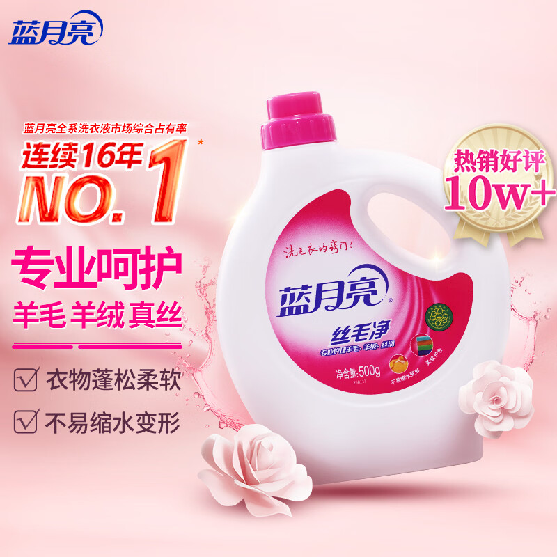蓝月亮丝毛净淡雅花香500g瓶 不易缩水变形 专业护理羊毛羊绒真丝洗涤剂
