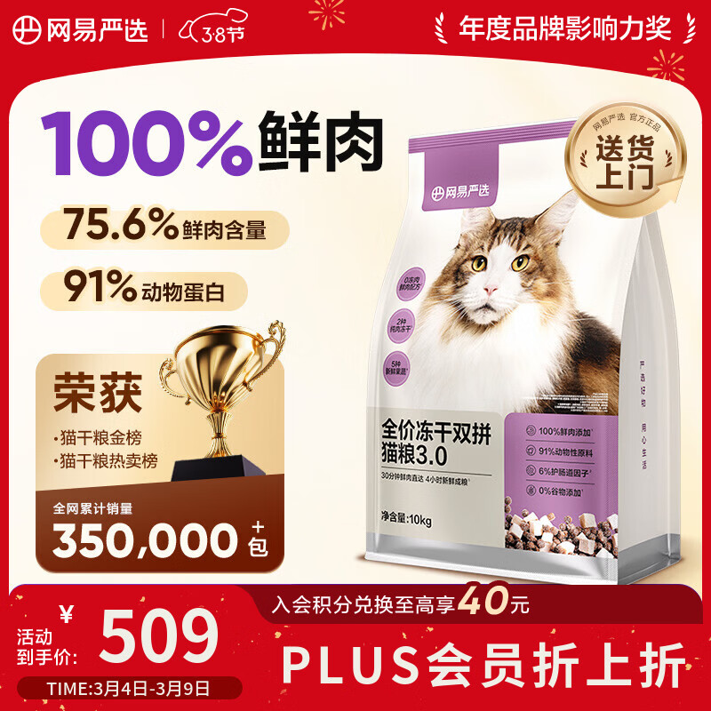 网易严选全价冻干双拼猫粮3.0升级 主粮成幼猫高鲜肉鸡鸭无谷护肠胃10kg