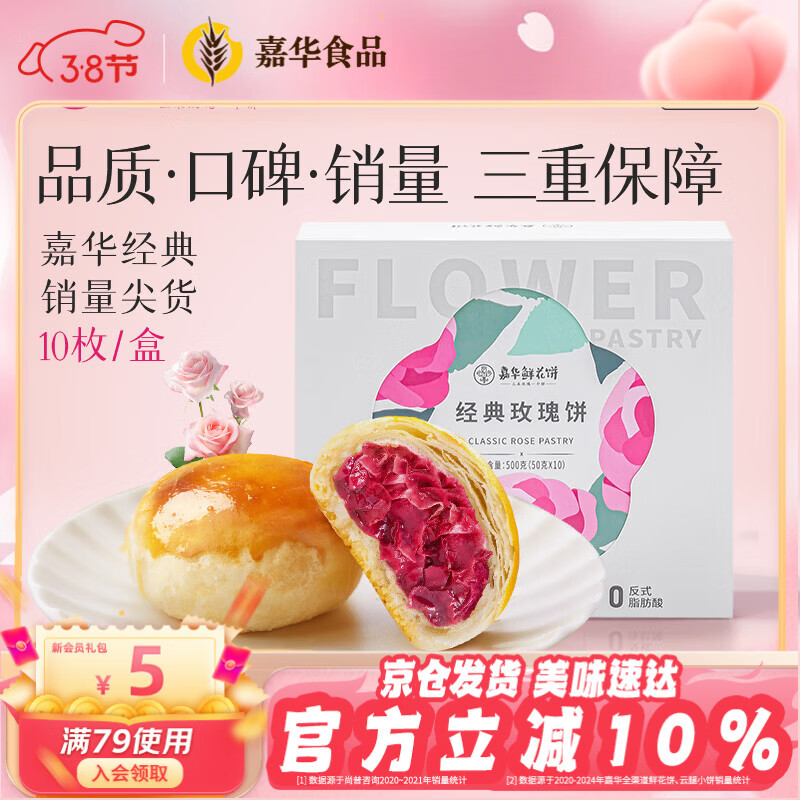 嘉华鲜花饼经典玫瑰花饼50g*10枚短保云南特产糕点早餐零食年货礼盒