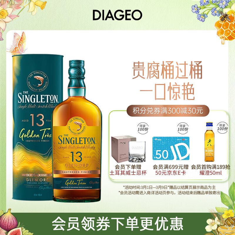 苏格登醇金13年 单一麦芽威士忌 洋酒 700ml