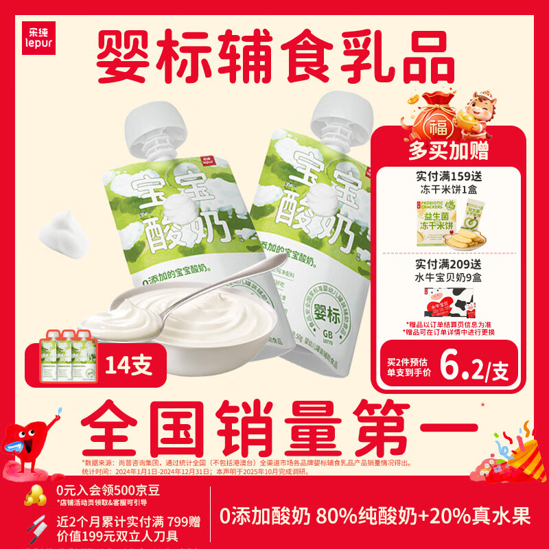 乐纯婴标宝宝酸奶原味50g*14支 常温辅食0添加0蔗糖儿童零食(6个月+)