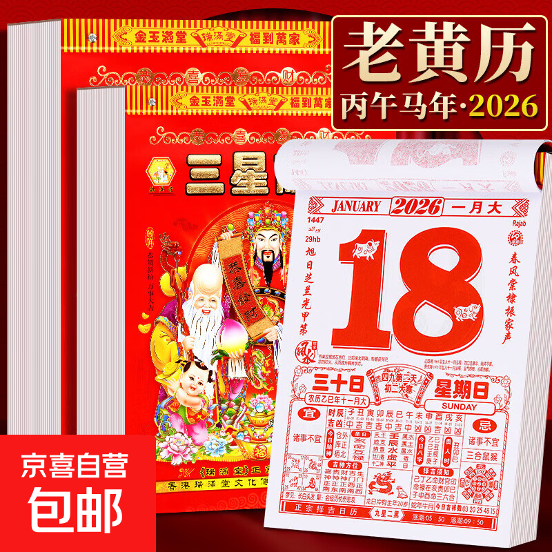 2026年日历家用手撕挂历每日一撕马年老黄历传统纸质大本万年历 16K【封面随机】