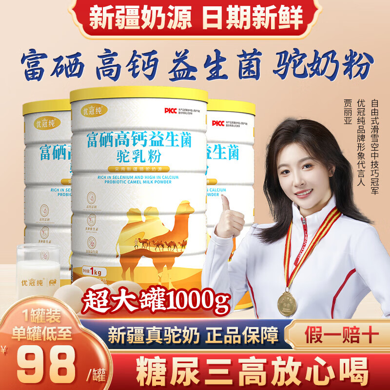 优冠纯骆驼奶粉新疆正宗官方益生菌成人中老年高钙奶粉糖尿病人可用食品 1kg*1罐 【体验装】