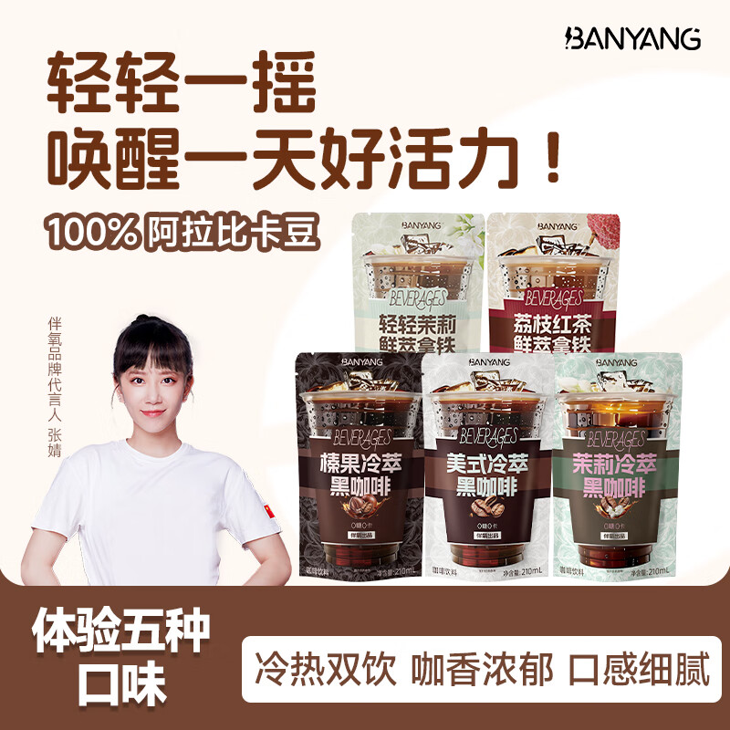 伴氧美式冷萃黑咖啡拿铁咖啡非咖啡液开袋即饮官方旗舰店正品 【5种口味210ml/袋】美式茉莉榛果茉莉拿铁红茶拿铁