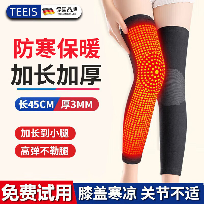 TEEIS德国护膝保暖老寒腿男女士专用防滑膝盖关节炎发热中老年人加长厚 艾草加长保暖护膝 均码丨80-180斤通用 丨两只装