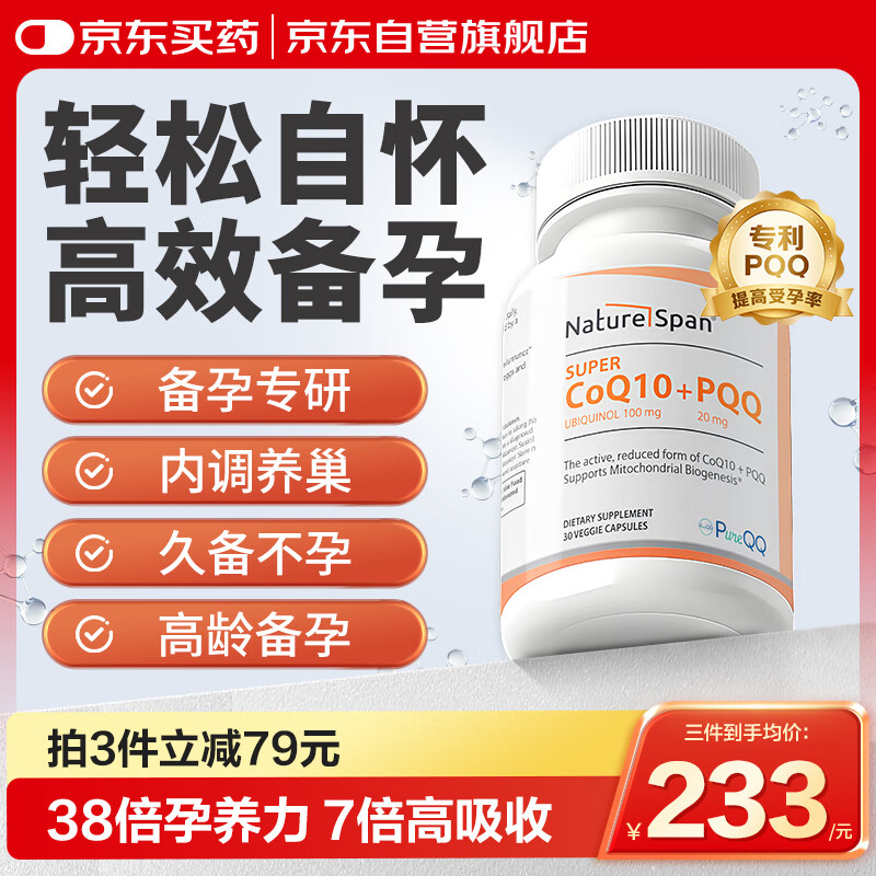 NATURESPAN辅酶q10备孕还原型泛醇改善卵子质量美国孕前调理卵巢pqq胶囊30粒