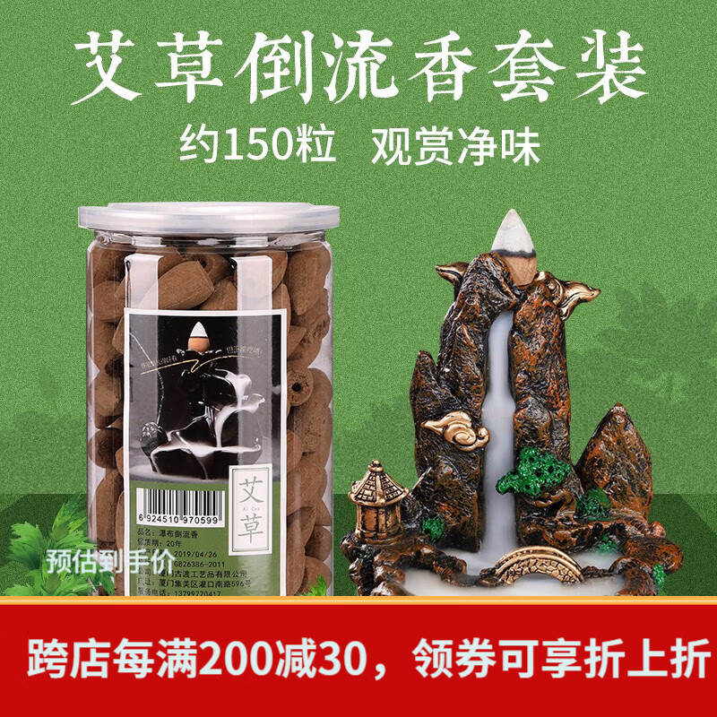 普云 瀑布倒流香高山流水炉套装崖柏塔香沉香檀香熏香香薰观赏香熏香 【艾草】+小桥流水香炉约150粒 1g