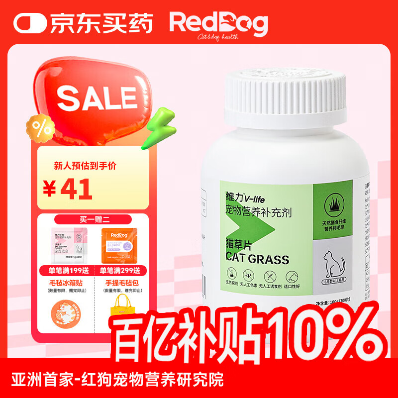 红狗(RedDog)【医院推荐】猫草片钙乳铁蛋白化毛膏猫咪软骨素狗鱼油q10卵磷脂 猫草片(200片)