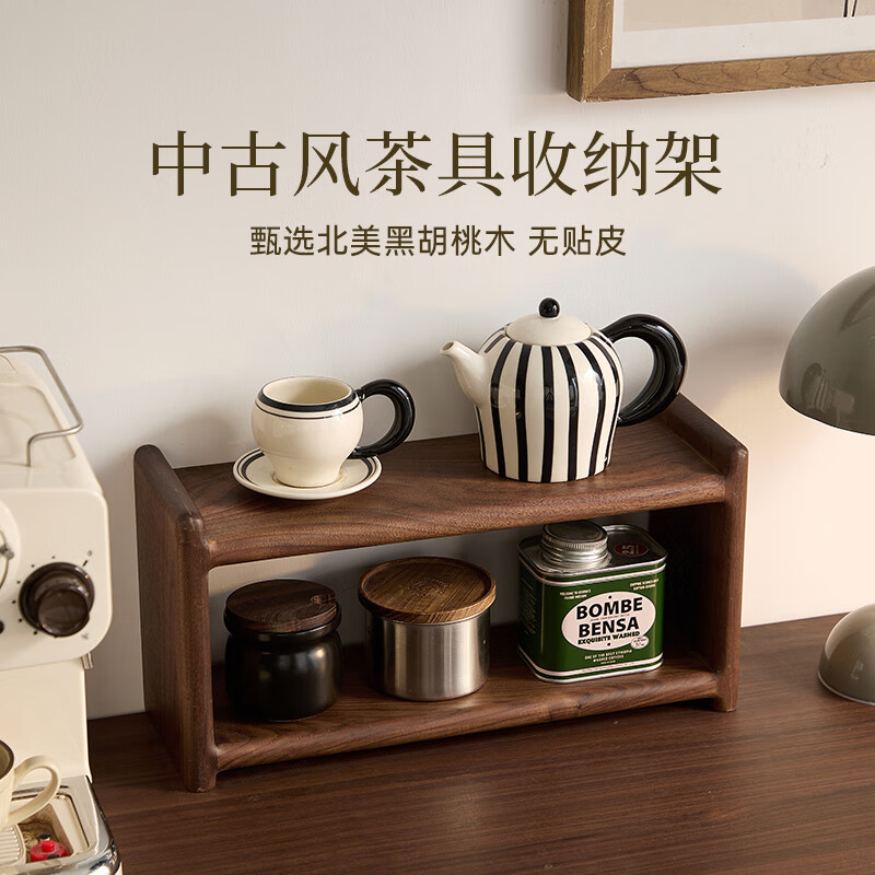 褐本黑胡桃木桌面收纳架杯子茶具书本客厅樱桃木实木多层置物架博古架 【格物】置物架黑胡桃木 榫卯结构 整装发货