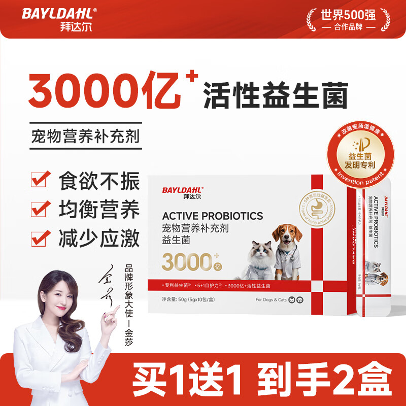 拜达尔宠物猫咪狗狗益生菌幼犬幼猫肠道止泻软便拉稀专用活性益生菌 【专利益生菌】买1送1 到手2盒20包
