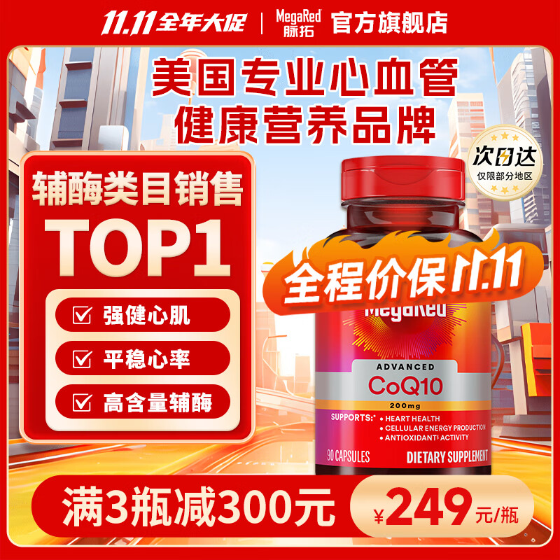脉拓MegaRed 辅酶Q10 200mg90粒美国原装进口呵护心脑血管coq10高含量 护心脏 辅酶Q10 200mg 90粒