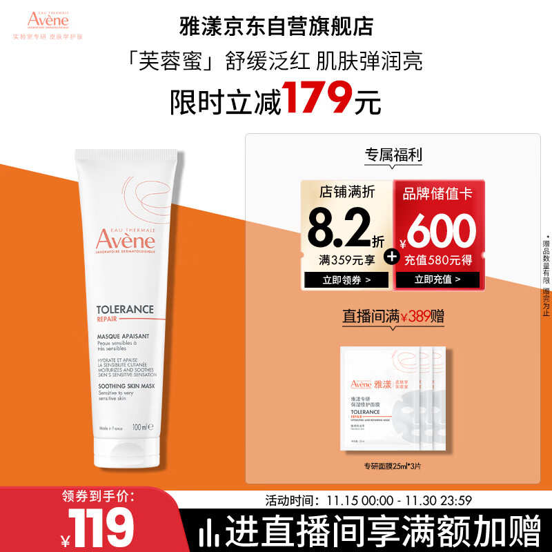 雅漾(Avene)【樊振东同款】专研舒缓修护面膜100ml 芙蓉蜜免洗涂抹面膜礼物