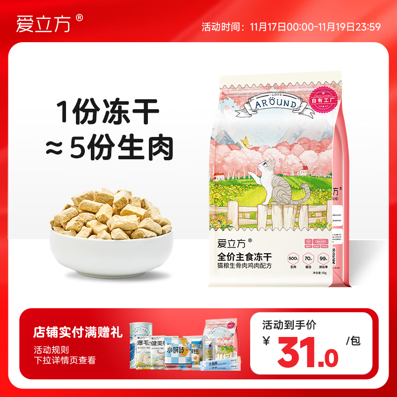 爱立方海洋盛宴冻干生骨肉 冻干猫零食营养猫咪冻干猫粮小包 鸡肉冻干60g