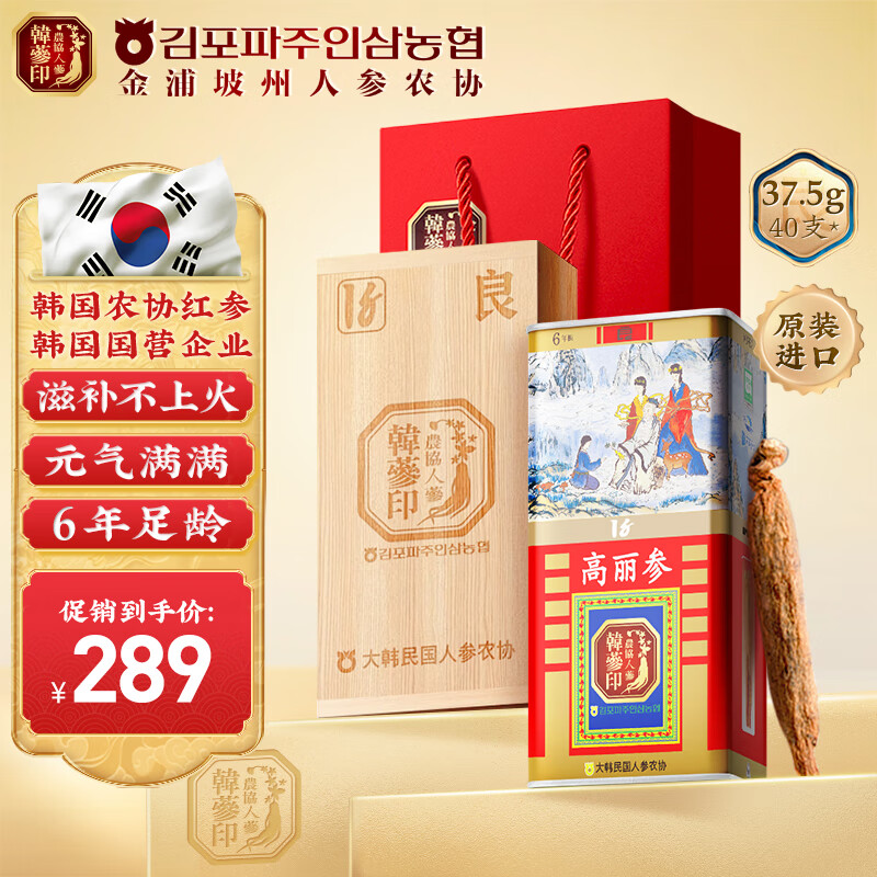 农协人参韩参印高丽参韩国原装进口6年根人参红参滋补礼盒送礼礼品 良40支37.5