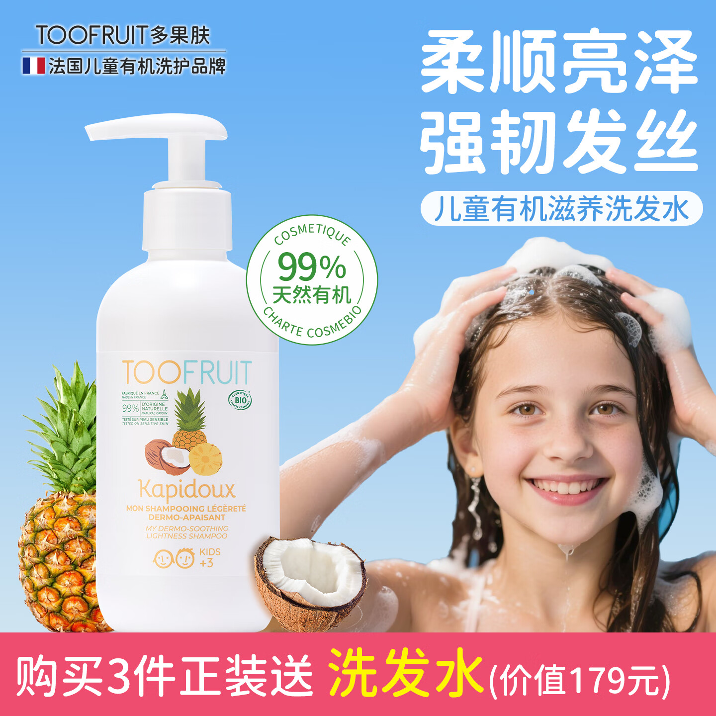 TOOFRUIT多果肤儿童青少年洗发水净屑止痒3-6-12岁200ml效期到26年2月 椰子菠萝味