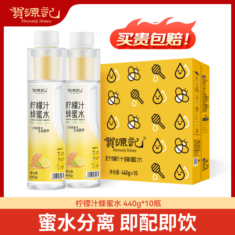 贺源记蜂蜜柠檬水440g10瓶装解腻饮料一拧一摇健康便捷分离式饮品 440g*20瓶【只有柠檬 蜂蜜和水】