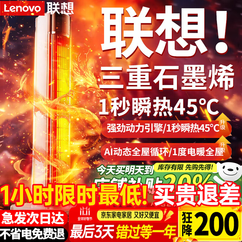 联想【AI三石墨烯速热丨一级省电】暖风机2025取暖器100大面积全屋升温家用电热小太阳电暖器适用小米 【200㎡速热】双螺旋石墨烯丨七天一度电丨智能恒温