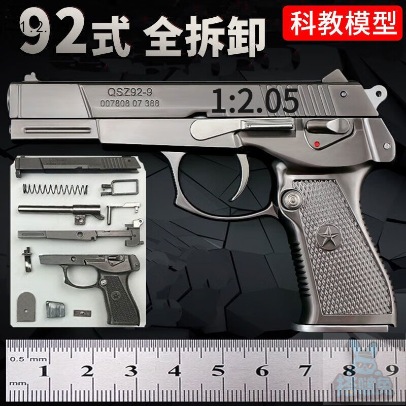 搭啵兔可拆卸国产92合金拼装模型枪大号全金属儿童玩具枪不可发射1:2.05 黑色+5弾+皮套+消音盒装