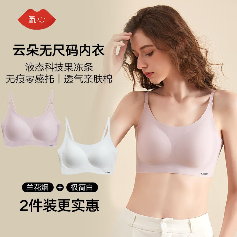 氧心(YANGXIN)云朵无尺码内衣果冻胶吊带背心女士内衣女文胸上托无痕无钢圈胸罩 兰花烟+极简白(吊带款) 均码 (A-C/90-140斤)