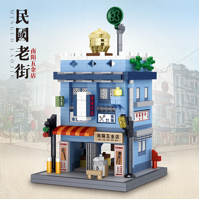 哲高积木民国老街建筑街景典当复古商行微颗粒拼装玩具模型摆件 南阳五金店-931PCS
