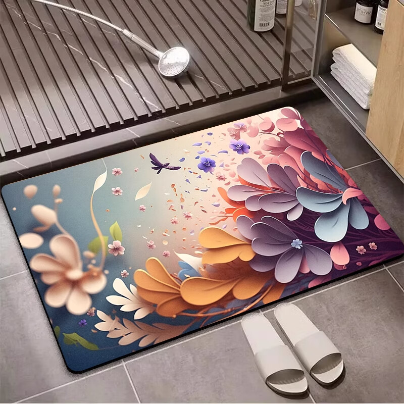 KAYE浴室地垫免洗卫浴吸水垫卫生间厕所门口防滑垫家用厨房入户门脚垫 GZN-3D幻境-飞跃花海 40X60cm
