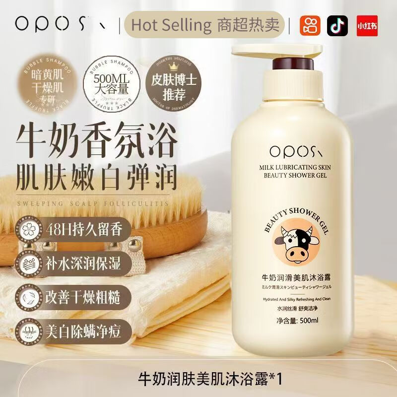 OPOSi【官方】牛奶沐浴露美白除螨祛背痘止痒去鸡皮持久留奶香味大容量 【去鸡皮】牛奶美肌沐浴露500ml