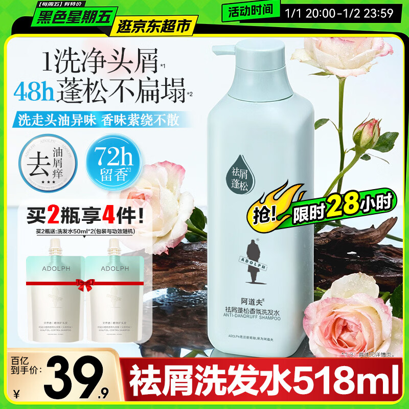 阿道夫洗发水518ml套装 精油香氛去屑控油蓬松洗头膏乳露留香男士女士 祛屑蓬松洗发水518ml 新香味
