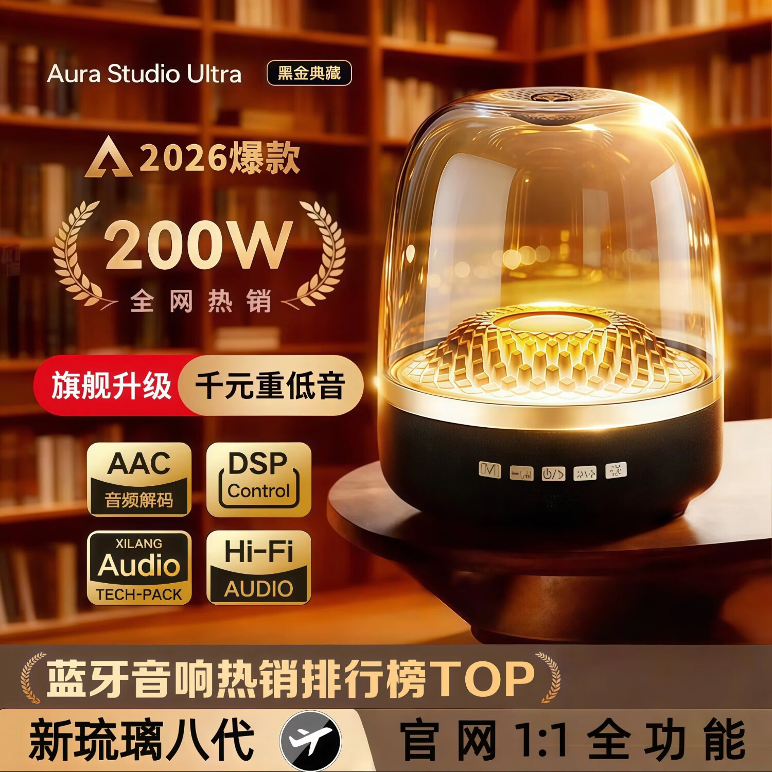 艾勒丝汀【哈曼琉璃8代丨顶配版】哈曼蓝牙音响无线音箱4代5代华强北柏林之声低音炮桌面台式电脑 Mini 顶配版 黑金琉璃丨千元音质丨律动灯效