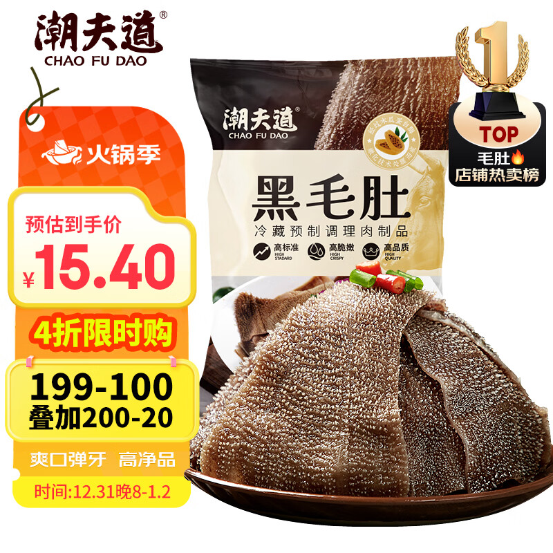 潮夫道冷藏黑毛肚250g 川渝火锅食材麻辣烫毛肚牛肚牛百叶生鲜