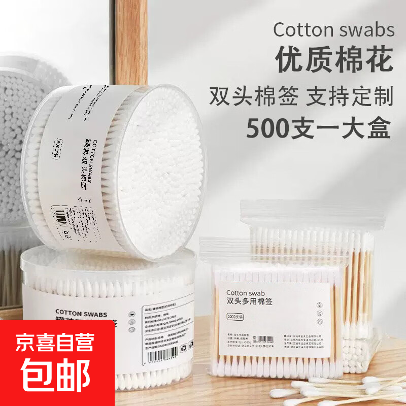 棉签双头盒装袋装一次性棉签化妆用棉棒掏耳朵家用尖头竹棒棉球 【圆+尖 精致盒装】500枚*1盒