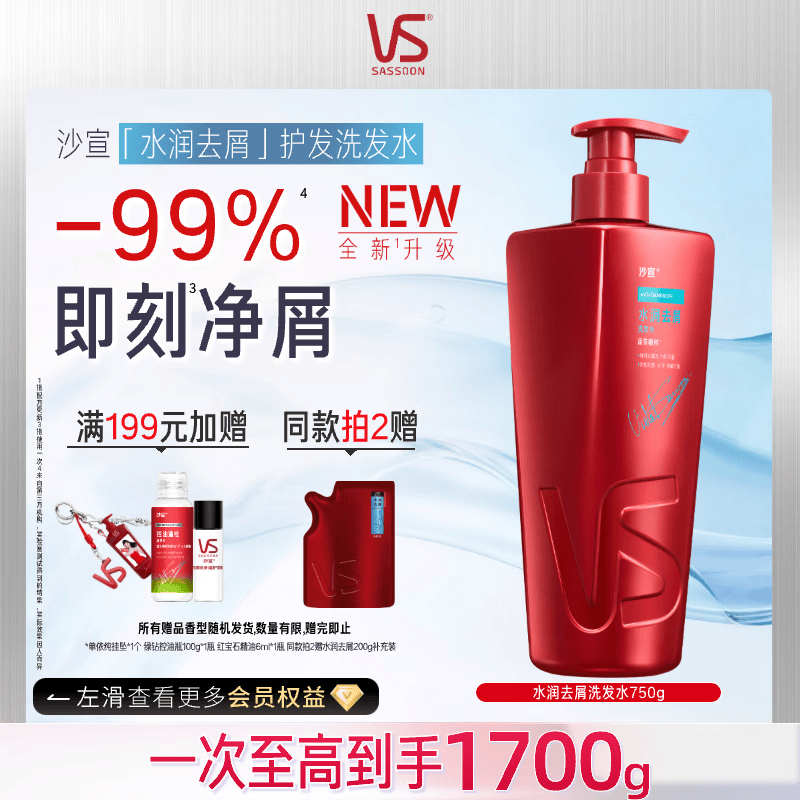 沙宣大红瓶水润去屑洗发水750g【单依纯同款】男女士洗头膏洗发露去油
