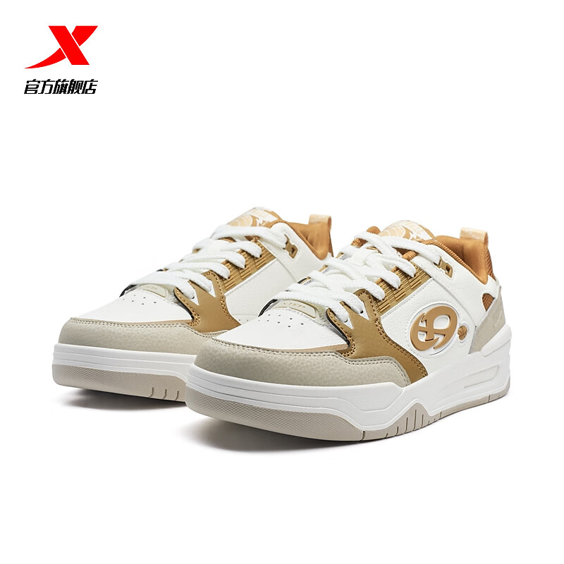 特步门店同款新途|板鞋男鞋2025夏季复古低帮休闲运动鞋975319310029 帆白/松麦杏/砂砾棕 42