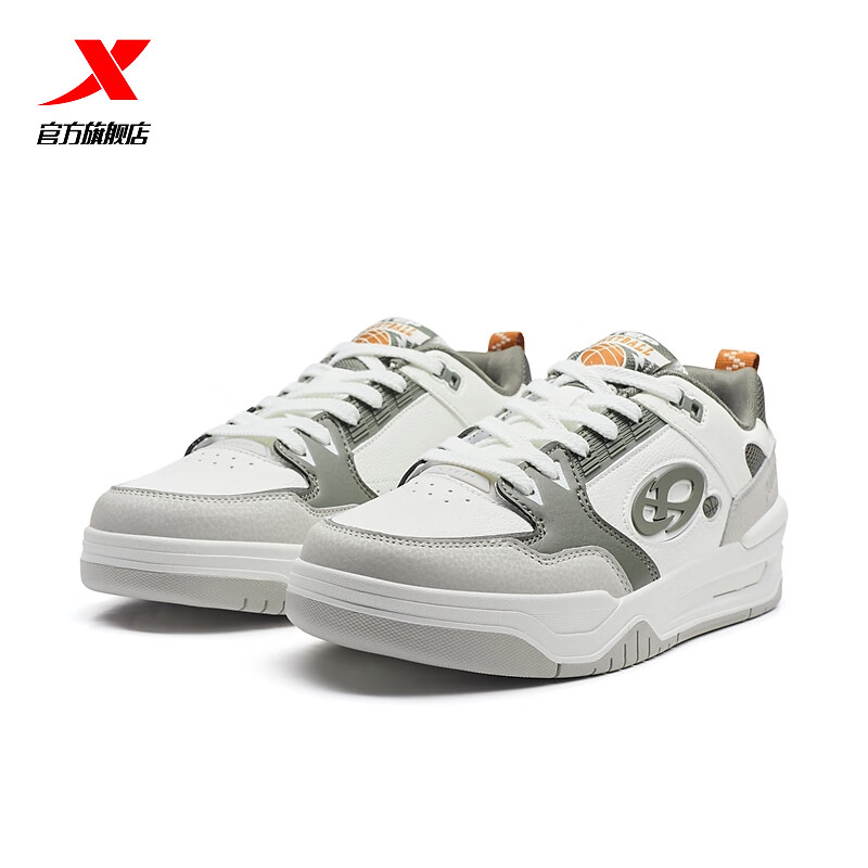 特步门店同款新途|板鞋男鞋2025夏季复古低帮休闲运动鞋975319310029 帆白/云杉绿/鸽子灰 44
