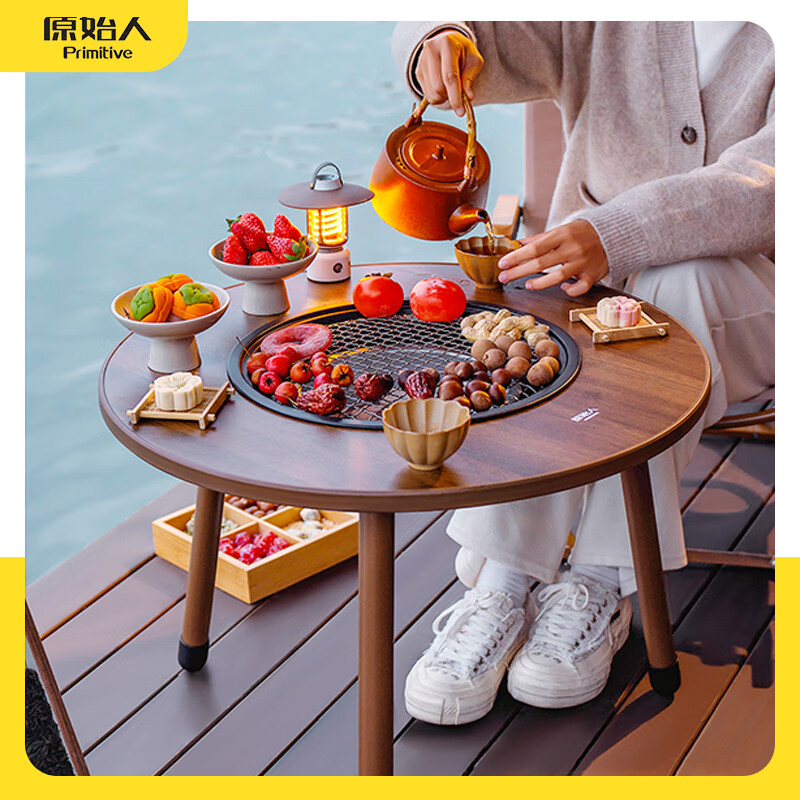 原始人围炉煮茶烤火炉套装器具全套桌子烧烤炉子家用户外新款