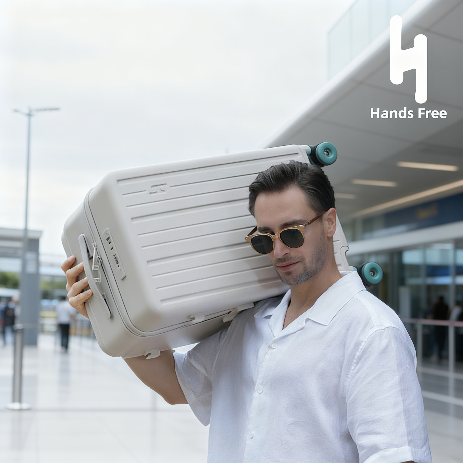 HANDS FREE宽拉杆行李箱双层防爆拉链旅行箱男女大容量拉杆箱三七开密码皮箱 奶杏色(608升级款)顺丰包邮 20英寸 (登机箱四轮、适合短途出行)