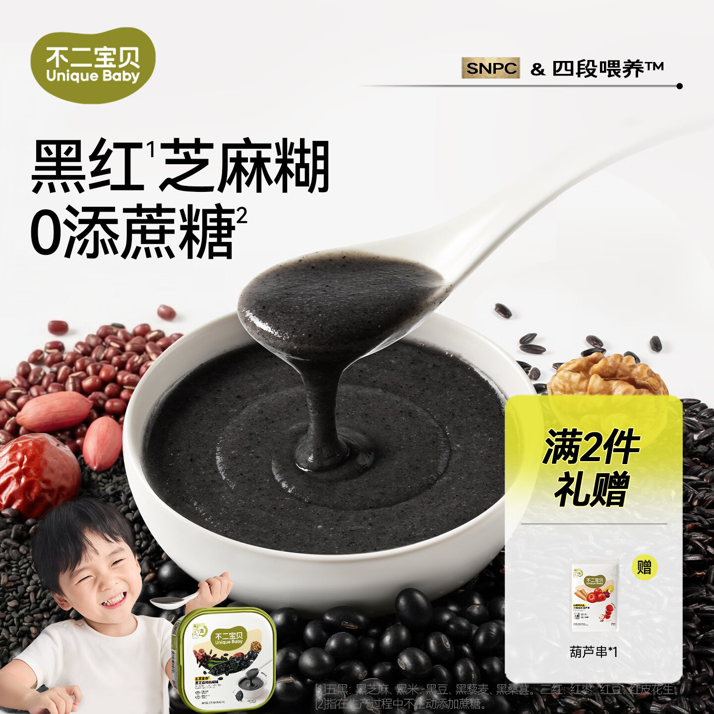 不二宝贝五黑芝麻糊糊搭配宝宝米粉辅食无糖婴幼儿童营养早餐冲饮375g*1桶