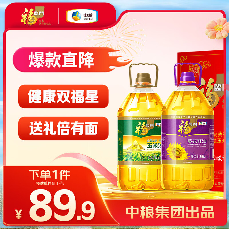 福临门 食用油 葵花籽油+玉米油 品质套装送礼团购礼盒装3.09L*2