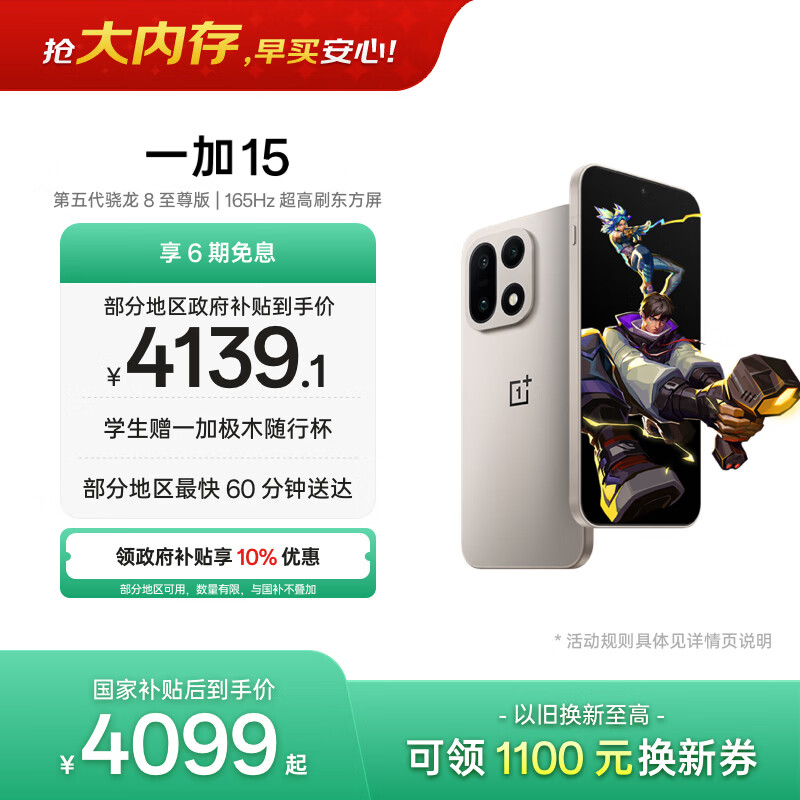 一加 15 12GB+512GB 原色沙丘 手机oppo 第五代骁龙8至尊版 165Hz超高刷 旗舰游戏电竞5G新机 国家补贴