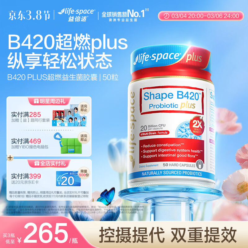 Life Space益倍适成人B420 PLUS超燃益生菌胶囊50粒/瓶澳洲进口