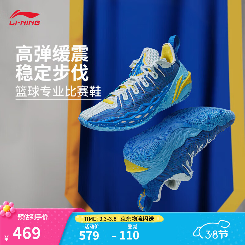 李宁巴特勒丨BUCKETS聚核芯助力系统篮球鞋男轻量回弹专业比赛运动鞋 彩蓝色/天水蓝-10 勇士 43