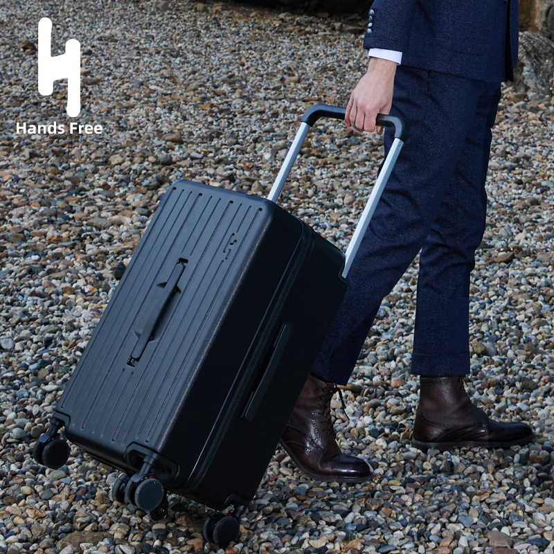 HANDS FREE宽拉杆行李箱双层防爆拉链旅行箱男女大容量拉杆箱三七开密码皮箱 铁石黑604 24英寸 (适中尺寸7-10天)
