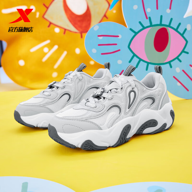 特步门店同款花瓣鞋3.0女2025年秋季新品增高运动休闲鞋975318320008 幻影灰/帆白 40