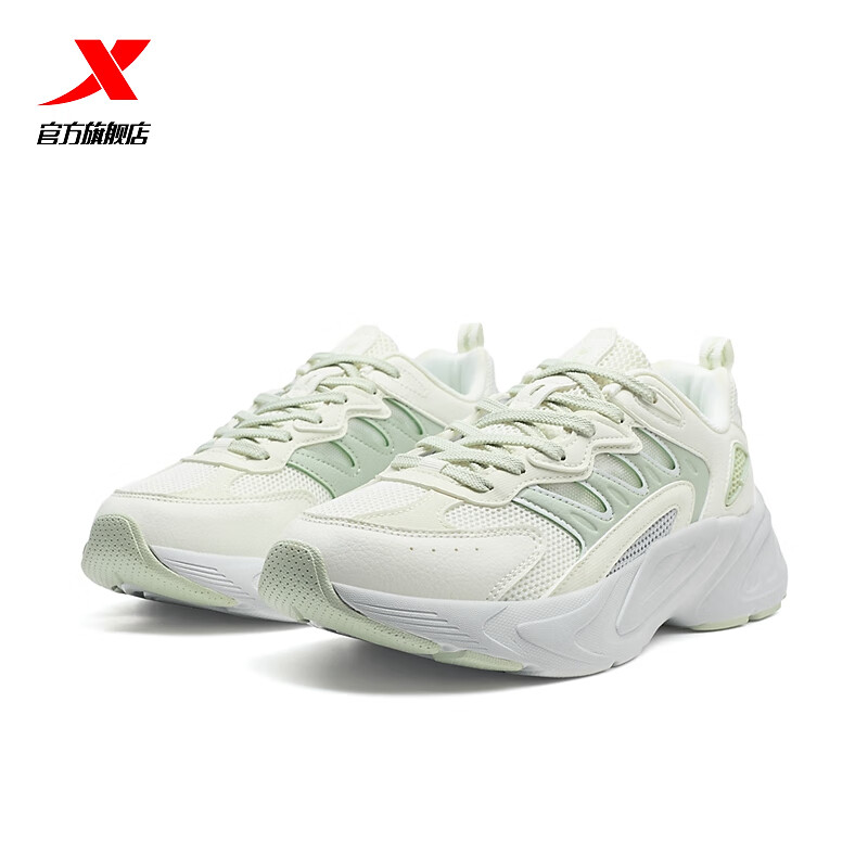 特步门店同款流派运动休闲鞋女2025秋增高厚底休闲运动鞋975318320010 帆白/凝脂绿 39