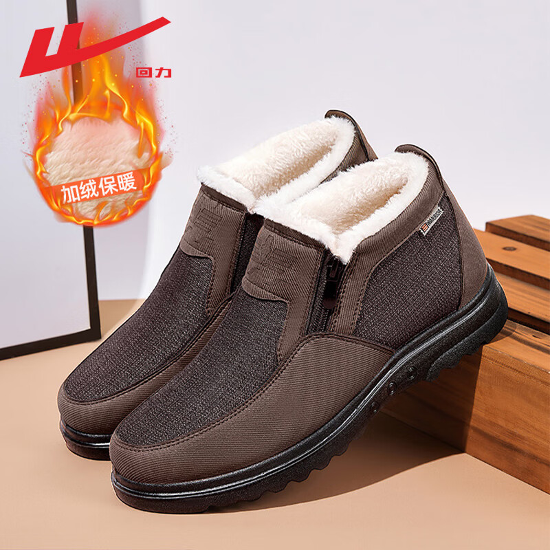 回力棉鞋男冬季加绒加厚东北保暖一脚蹬男鞋软底雪地靴1759 棕色 40
