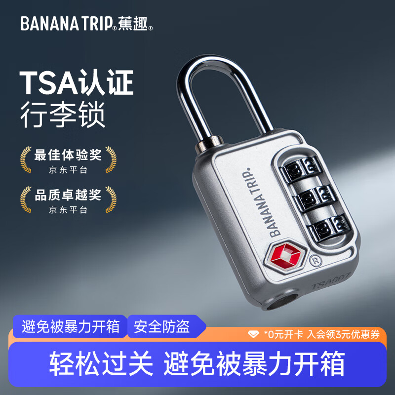 Banana Trip行李箱海关锁TSA密码锁旅行箱托运出差通关锁便携防盗锁 银色